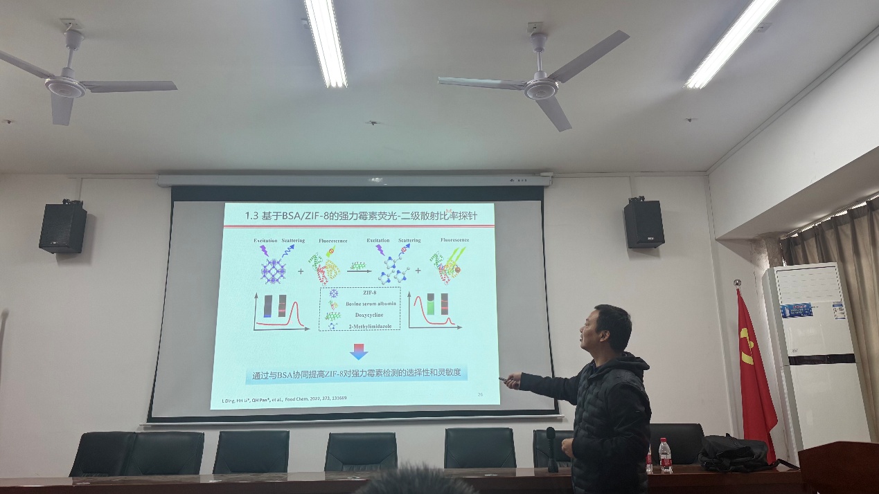 潘教授结合课题组近年来在金属有机凝胶(MOGs)、MOFs材料及荧光探针等方面的研究工作,详细介绍了基于竞争配位策略开发的BSA/ZIF-8复合荧光传感器,该材料在微量分析、多组分识别与选择性检测方面展现出优异性能。