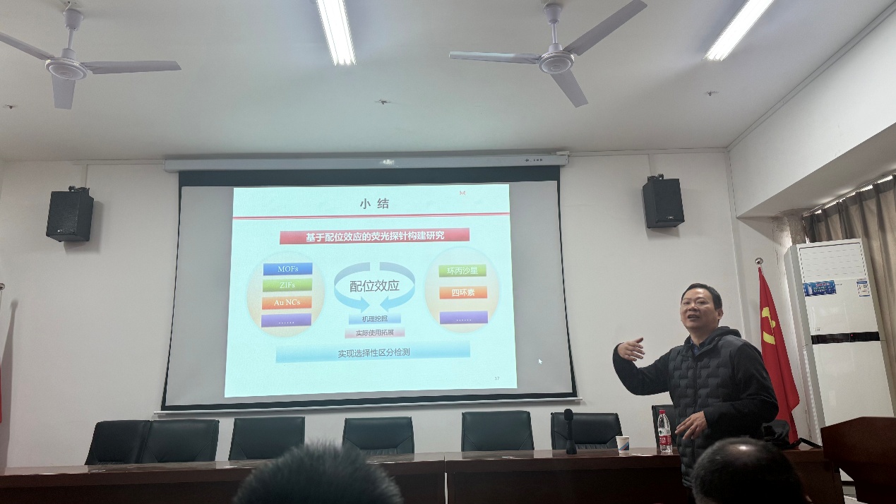 报告结束后,潘教授与在场师生围绕竞争配位机制、材料结构调控及实际应用场景等问题展开了深入交流与讨论。现场学术氛围浓厚,互动积极。