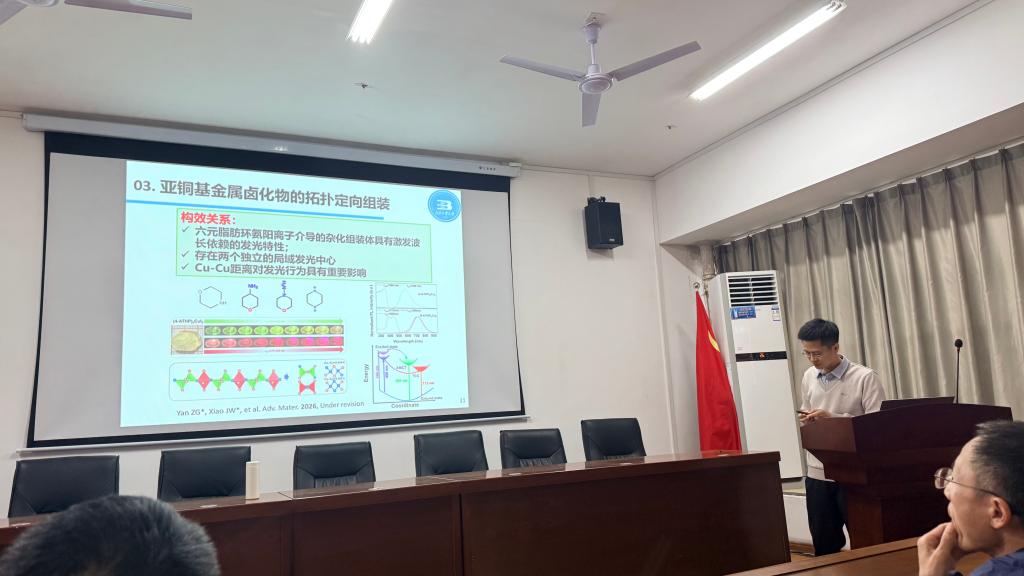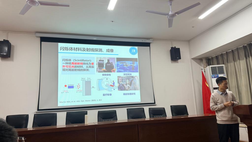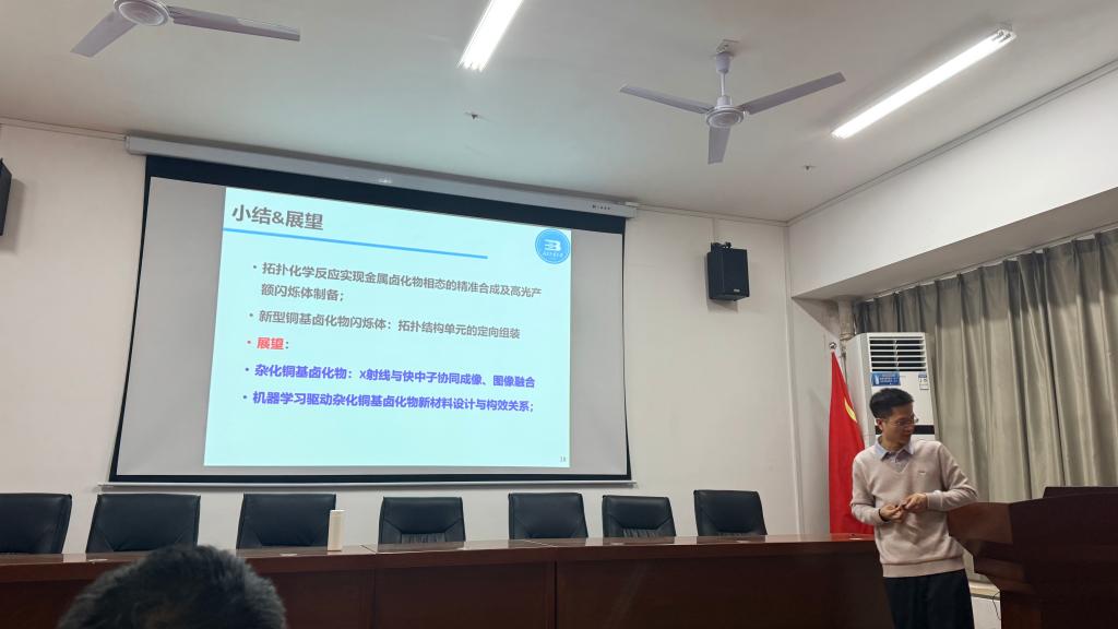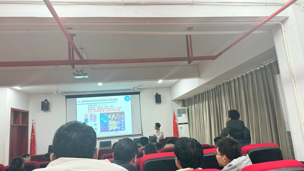 报告结束后,肖家文教授与现场师生围绕“拓扑化学合成机制”“材料稳定性提升路径”及“X射线探测器产业化前景”等议题展开深入交流。针对师生提出的化学比例精确调控、重原子基体选择、亚铜卤化物晶体氧化抑制等问题,他结合团队研究实例予以详细解答,为相关科研工作提供了有益借鉴。