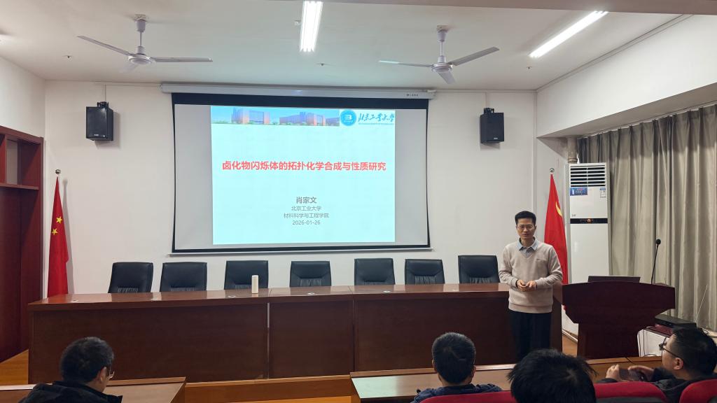 2026年1月26日下午,江西理工大学国际创新研究院“赣鄱”学术论坛(第22期)在综合实验楼A1101顺利举行。本期论坛特邀北京工业大学材料科学与工程学院特聘教授、博士生导师肖家文作专题学术报告,题为《卤化物闪烁体的拓扑化学合成与性质研究》。相关学院师生及科研人员积极参与,现场学术交流气氛热烈。
